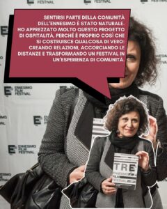 Per me uno degli aspetti più belli del festival è Ennesimo Ospite: grazie a questo progetto, chi lo desidera può aprire le porte della propria casa e accogliere un attore, un’attrice o un regista. È un modo concreto per coinvolgere la popolazione e creare un legame autentico tra la città e il festival. Qualche anno fa anch’io ho partecipato a questa esperienza, ospitando un’attrice arrivata da Amsterdam. È stato un incontro speciale: una ragazza simpatica, a volte un po’ spaesata, con cui, nonostante il mio inglese non proprio perfetto, siamo riuscite a comunicare e a condividere momenti semplici ma significativi. Sentirsi parte della comunità dell’Ennesimo è stato naturale. Ho apprezzato molto questo progetto di ospitalità, perché è proprio così che si costruisce qualcosa di vero: creando relazioni, accorciando le distanze e trasformando un festival in un’esperienza di comunità, ha affermato Tina De Falco, Ennesimo Ambassador.
