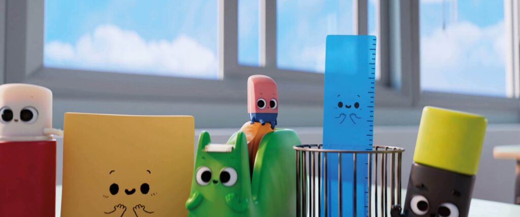 A pencil, an eraser, and other school supplies inside a school. Together, they will explore the school building and experience extraordinary adventures. Despite all wanting to have fun, they are very different from each other and will have to learn to collaborate.