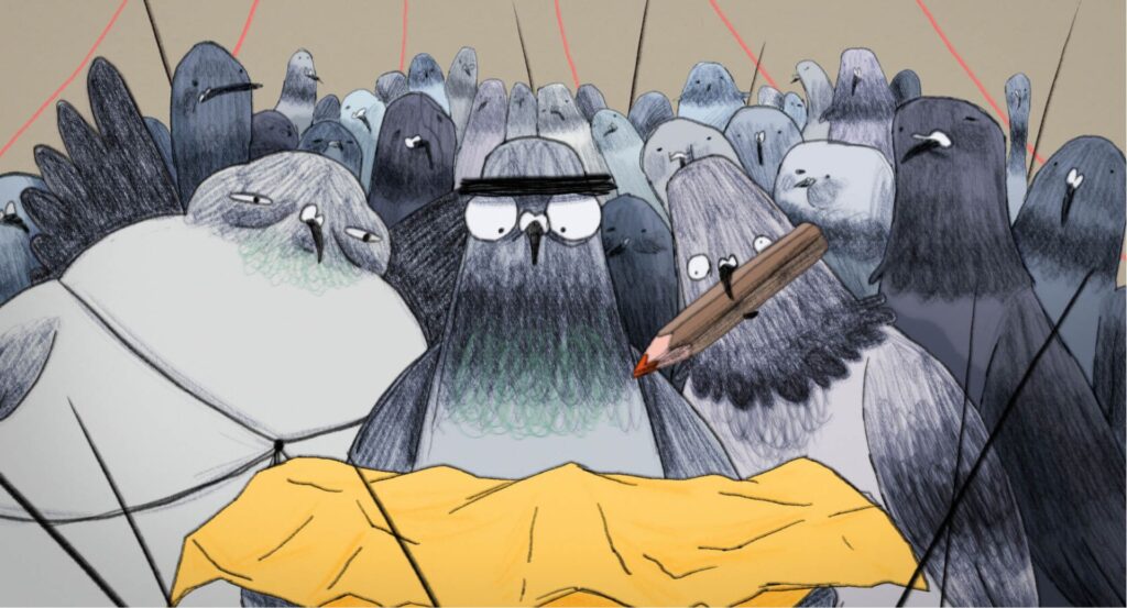Urban pigeons are seen as pests, as rats of the sky. They are rudely chased away and their nests are removed. When a group of pigeons hears that the mayor promises housing for everyone, they decide to submit a petition at the town hall.