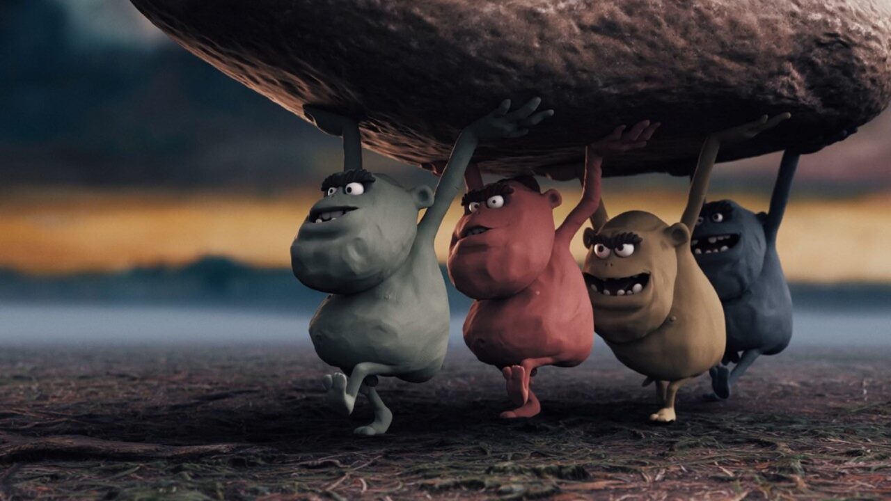 Quattro uomini primitivi uniscono le forze per costruire qualcosa che li protegga dalle intemperie. Ma cosa sarà?